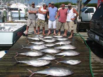 Three bigeye tuna hit us one day in late MAY... Scott Creswell boated one 120 lb, Justin Snow's weighed 130 LB, and after a grueling 2 hour battle, David Dretel boated one 155 lb, all earning NC citations for their endurance.