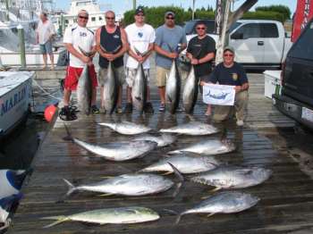 In mid-May, every-year customers Irving Pritchett & Robert Crowder had unbelievable action, filling the box with a beautiful class of mahi, ranging from 10-26 lb but averaging a whopping 15 lb.