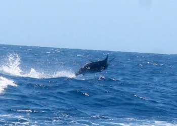 In early June, Matt D'amico & crew, who fish with me a few days every year, , started their first day with a double and triple header of yellowfin tuna, one pushing 60 lb...... then a small blue marlin missed the bait, then 20 minutes later a bigger one showed up, Lucas fed it & David Lloyd released the 400 lb blue marlin after an exciting 30 minutes... late in the day we hooked a double header of 50 lb yellowfin, got going again & the big yellowfin hit everything..... Matt & company boated all six, some in the 55-65 lb class.