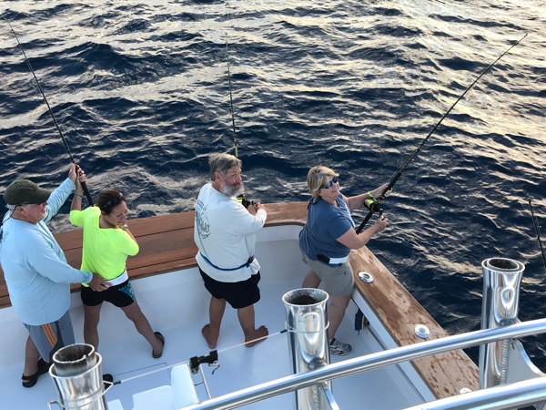 GREAT LAST DAY OF FISHING     Ron & Ronnie Johnson, BJ & Carly had a great last of three fishing days..... ran up north and found some bait and had 2 hours of awesome action, including back to back triple headers, and a few double headers... ended the day catching 16 out of 30 bites....